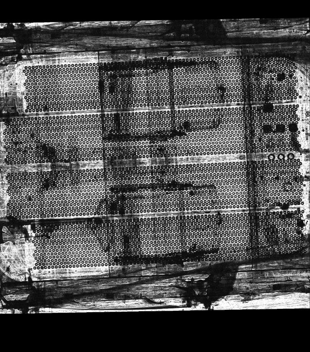 © Fraunhofer IIS | Vollständiger Scan der Batteriemodule eines Elektrofahrzeugs mit dem AIR-Portal. Deutlich sichtbar sind die einzelnen zylindrischen Batteriezellen und deren richtige Lage, wodurch eine Beschädigung auszuschließen ist.