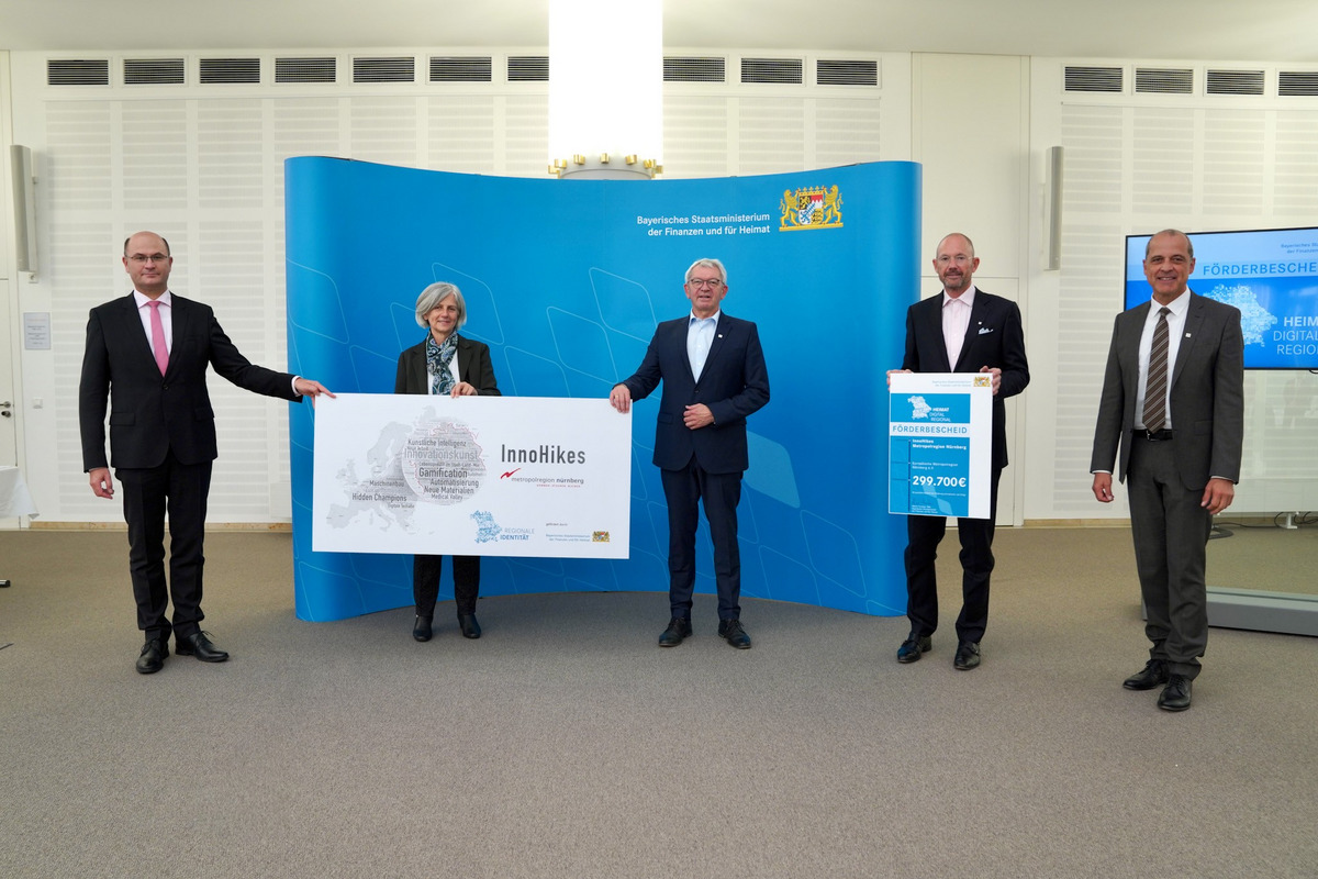 Finanz- und Heimatminister Albert Füracker betonte: „Die Europäische Metropolregion Nürnberg vereint Stadt und Land in weiten Teilen Frankens und der Oberpfalz. Sie symbolisiert so den Zusammenhalt einer Region selbst über Landkreisgrenzen hinweg. Dabei blickt sie zugleich auf Lebensqualität, Genuss und Kultur wie auf das innovative Potential in Wissenschaft und Wirtschaft. Das einzigartige Projekt ‚InnoHikes‘ soll die technologischen Highlights und innovativen Unternehmen in der Region besonders für junge Leute erlebbar machen. Mit hybriden Erlebnistouren verbindet die geplante Plattform das Thema Heimat mit Digitalisierung und trifft damit den Puls der Zeit.“