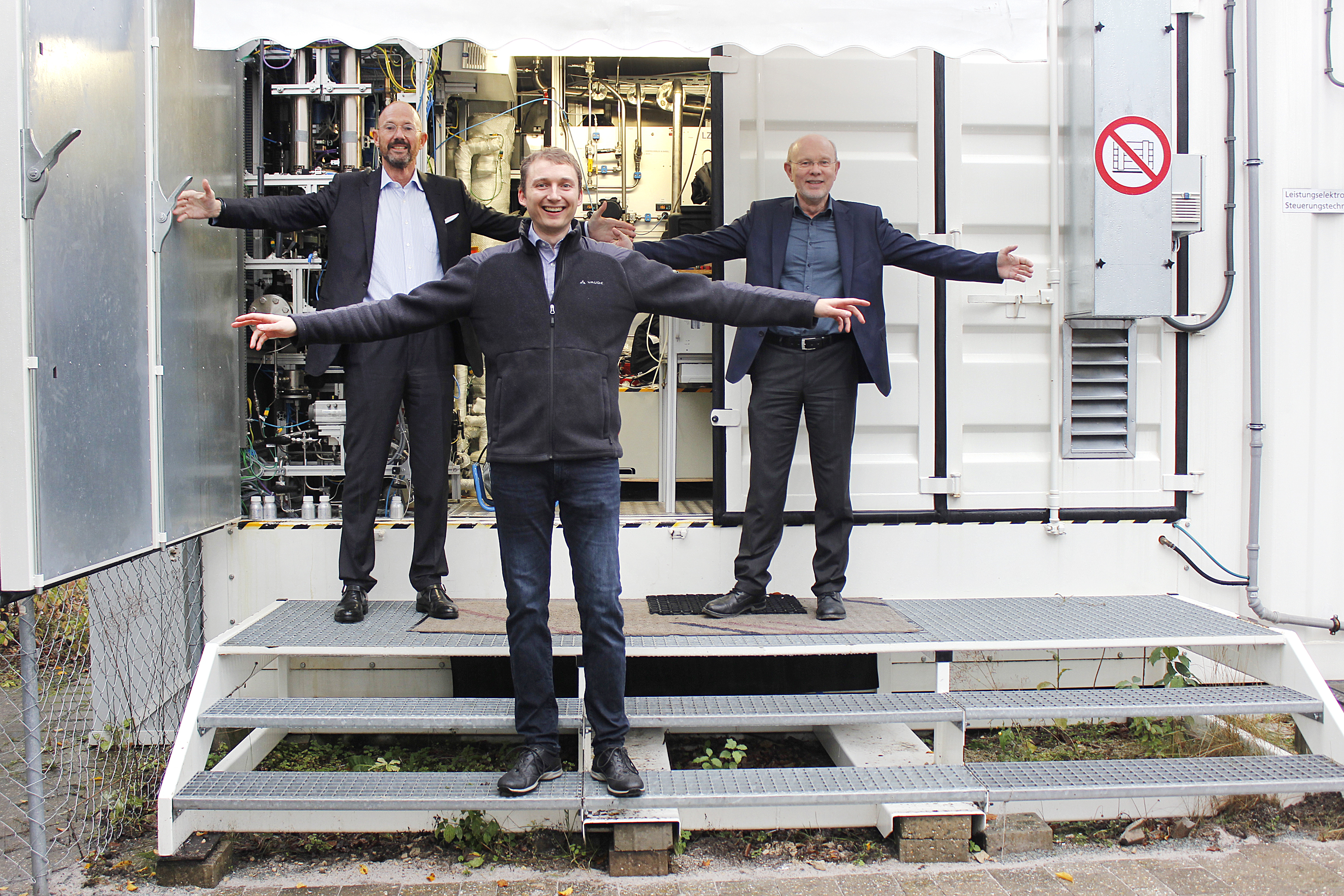 „Sogar vom Homeoffice aus habe ich die Messdatenaufzeichnung unseres ‚Wasserstoff-Containers‘ regelmäßig gecheckt“, erzählt er. Die technologieübergreifende Demonstrationsplattform dient der Erzeugung, Speicherung und Rückverstromung von Wasserstoff. „Wasserstofftechnologie ist ein wichtiger Beitrag zur nachhaltigen Energieversorgung und Energienutzung“, ist Johannes Geiling überzeugt. Der Wasserstoff-Container ist ein Gemeinschaftsprojekt des Fraunhofer IISB mit der Universität Erlangen-Nürnberg (FAU) und dem Fraunhofer IIS. 2015 haben sich die Institutionen mit der Gründung des Leistungszentrums Elektroniksysteme (LZE) zusammengetan. Mit dem Container haben die FAU und die Fraunhofer-Institute eine komplette Prozesskette generiert, die elektrische Energie in chemisch gebundenen Wasserstoff überführt und daraus wieder Strom gewinnt.