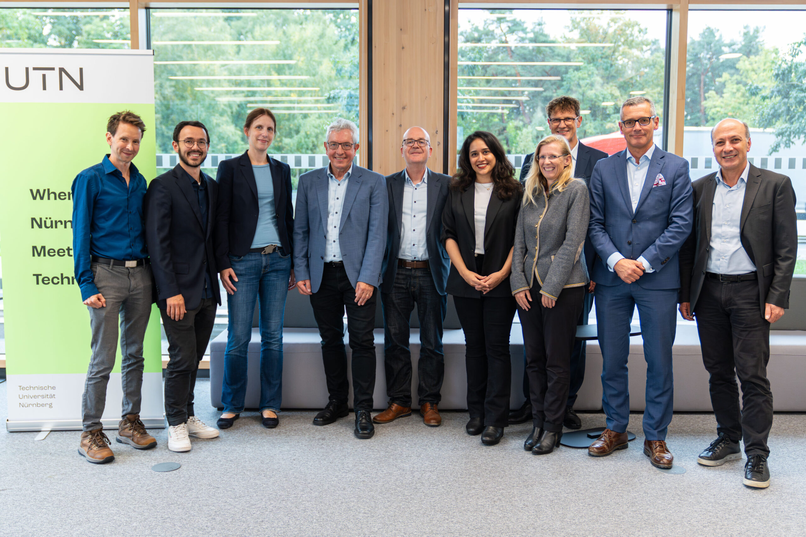 © UTN/Tobias Rühl | v.l.n.r./from left to right: Prof. Dr. Michael Roth, Prof. Dr. Yuki Asano, Prof. Dr. Gyburg Uhlmann, Prof. Dr. Wolfram Burgard, Prof. Dr. Michael Huth, Dr. Reihaneh Mirjalili, Prof. Dr. Isa Jahnke, Dr. Michael Fraas, Prof. Dr. Tamim Asfour; hinten/behind: Prof. Dr. Alexander Martin