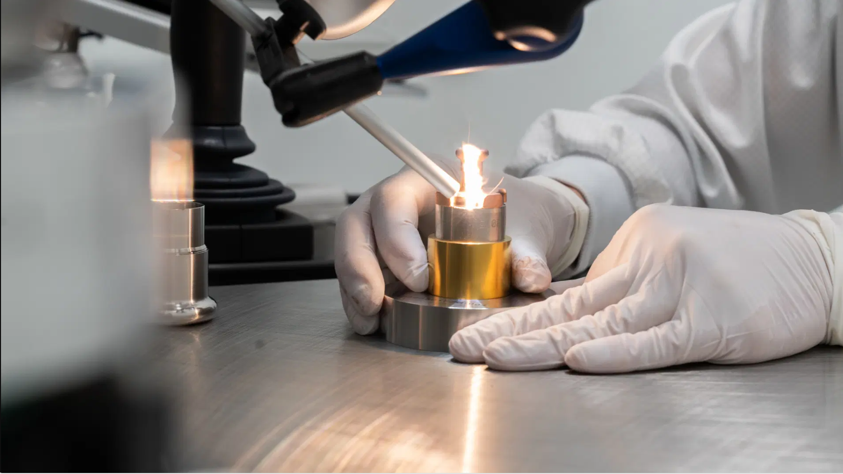 Laserschweißen von Röhrenbauteilen unter dem Mikroskop im Reinraum. © Siemens Healthineers