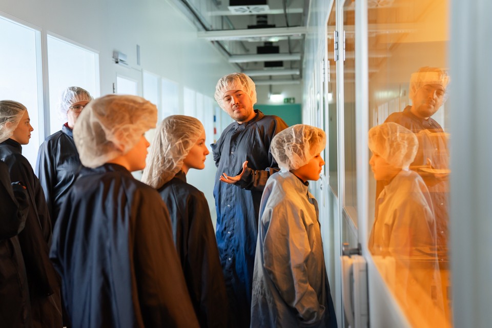 © Elisabeth Iglhaut / Fraunhofer IISB | Die Schülerinnen und Schüler der Gewinner-teams reisten für die Siegerehrung zur DKT 2024 nach Erlangen und besichtigten hier das Reinraumlabor