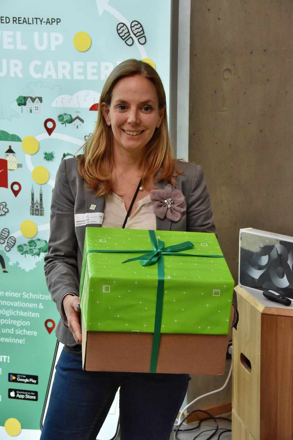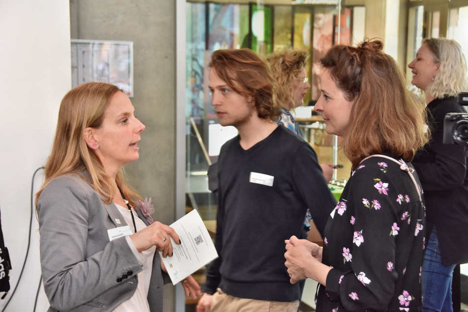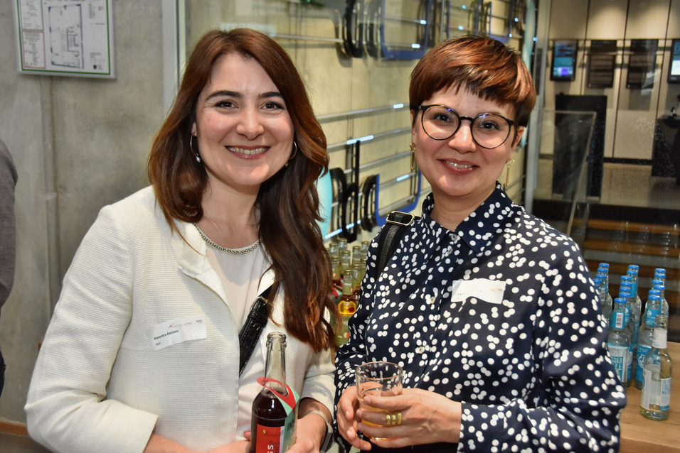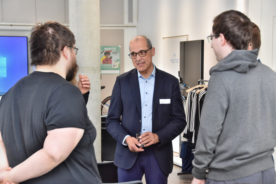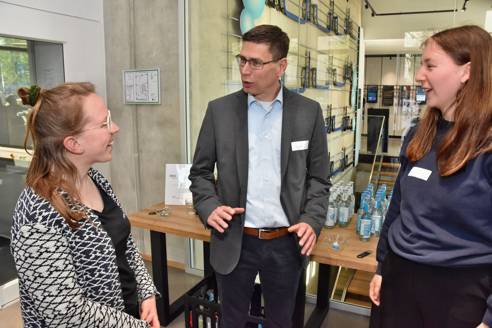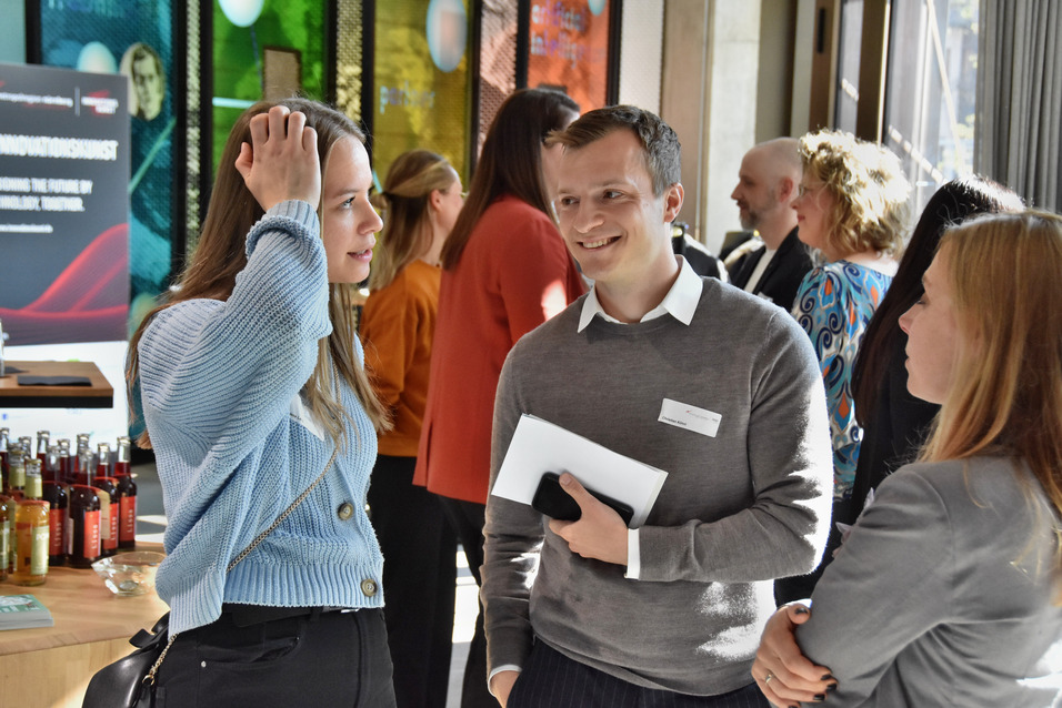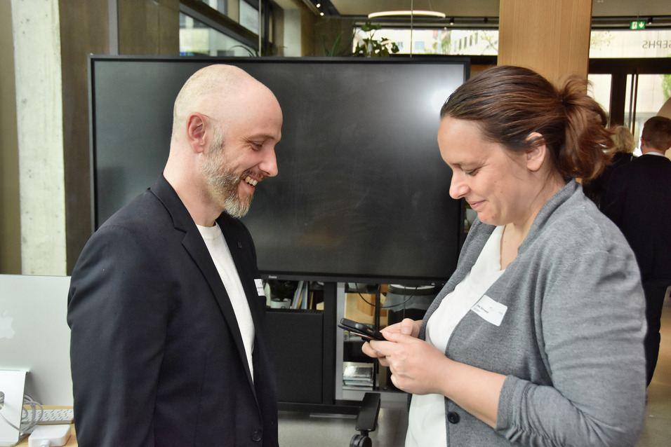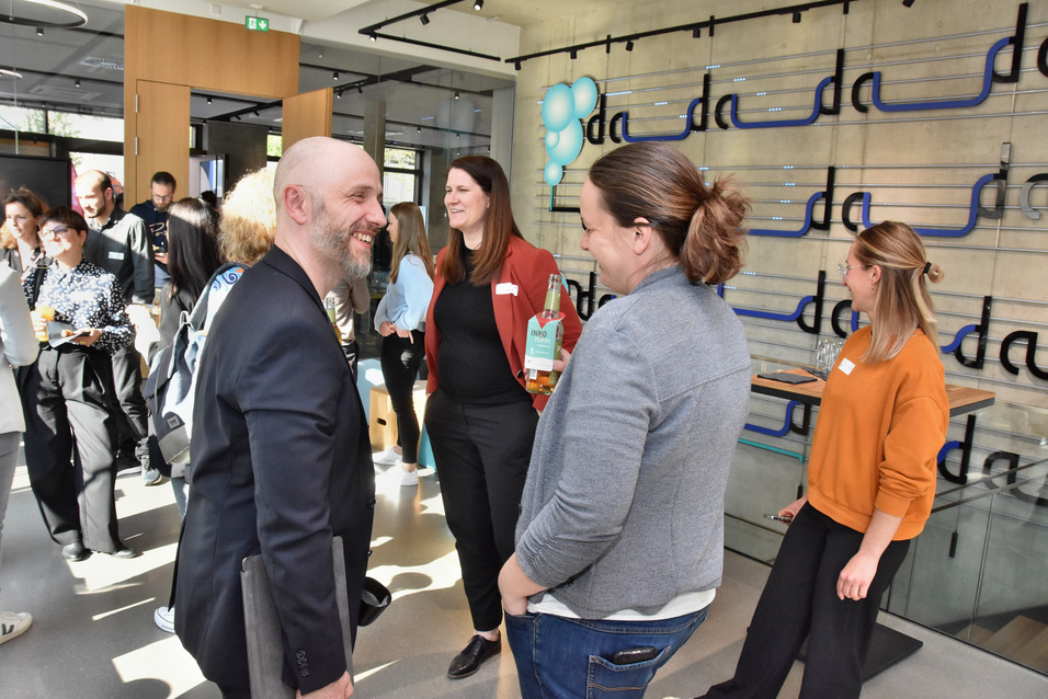 Spieler:innen der App InnoHikes erhalten ihre Gewinne und können sich exklusiv mit Vertretern der beteiligten Firmen in lockerer Atmosphäre unterhalten