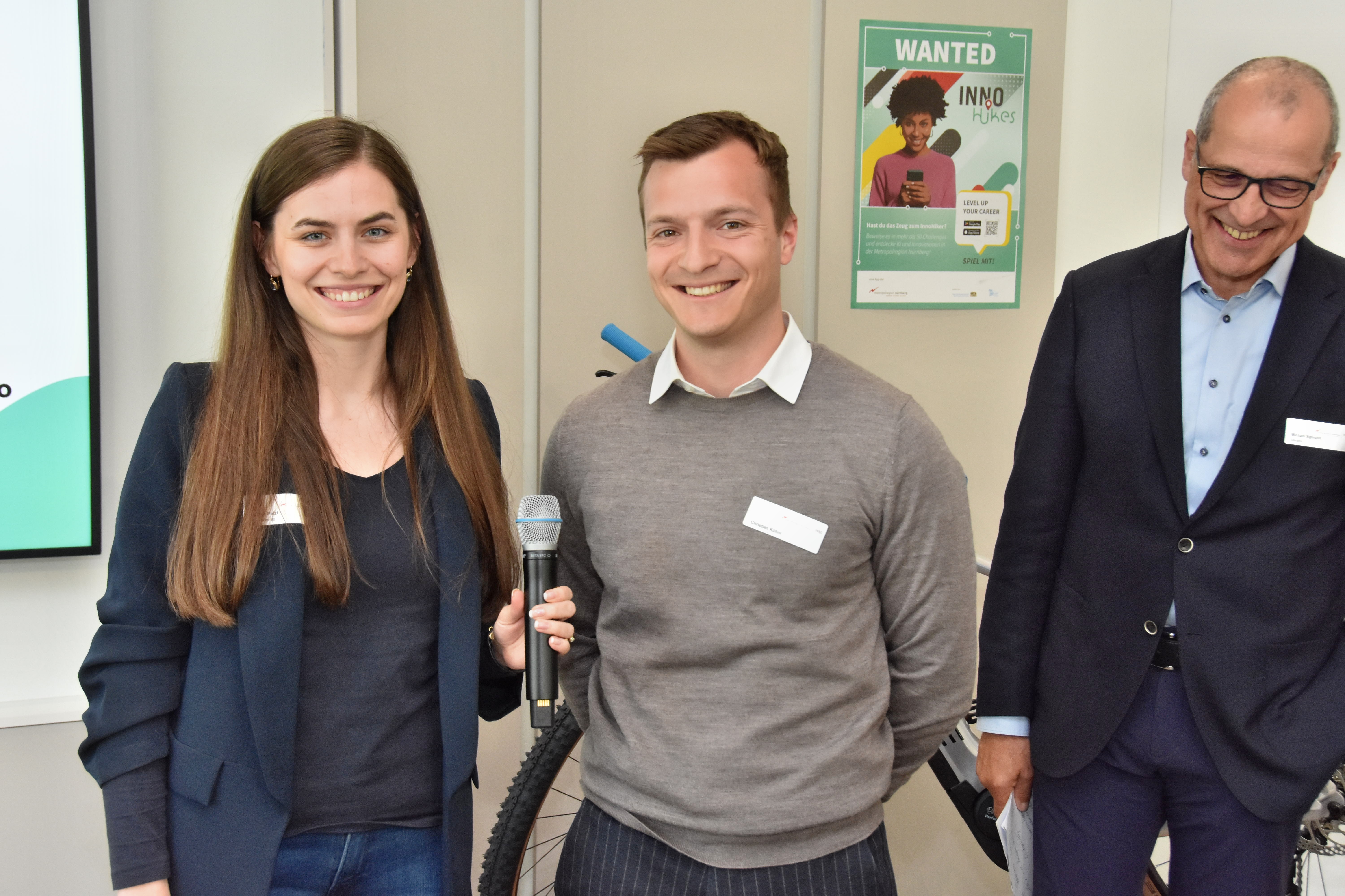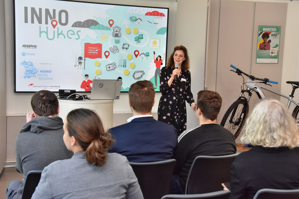 Rätsel lösen, Punkte sammeln und gewinnen – die App InnoHikes (innohikes.de) führt in einer digital-analogen Schnitzeljagd durch die Metropolregion Nürnberg. Über die App können Schulabsolventen, Auszubildende, Studierende und Young Professionals spielerisch entdecken, wieviel Kreativität, Erfindergeist und Ideenreichtum in der Metropolregion Nürnberg steckt. Der Schwerpunkt des ersten Hikes lag auf Künstlicher Intelligenz (KI).