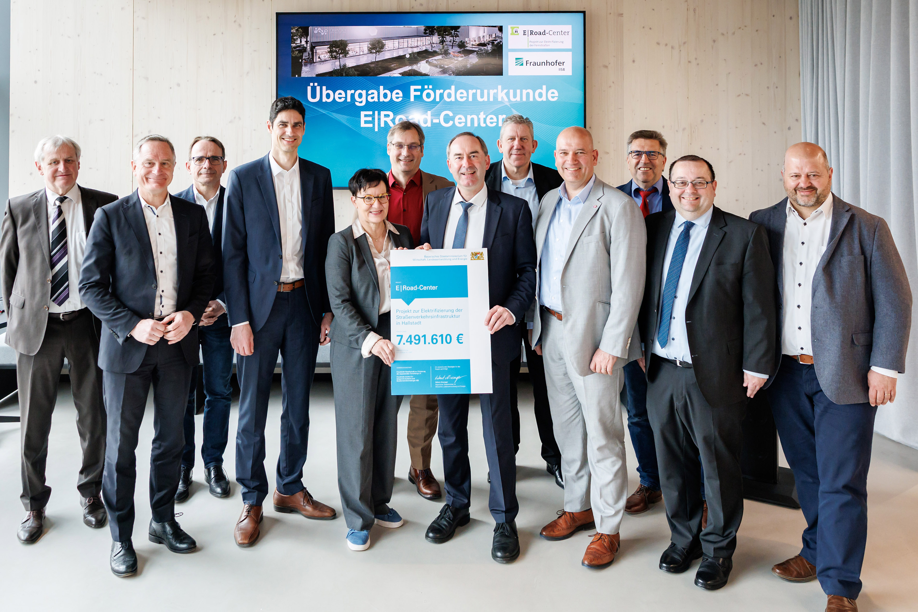 Der bayerische Wirtschaftsminister Hubert Aiwanger hat am 10. April 2025 das neue Technologiezentrum des Fraunhofer IISB zur Erforschung kontaktloser Energieübertragung für elektrische Fahrzeuge eröffnet und die Förderurkunde übergeben. Das E|Road-Center ist ein weiterer Baustein im Hightech-Spektrum des Cleantech Innovation Parks in Hallstadt bei Bamberg.