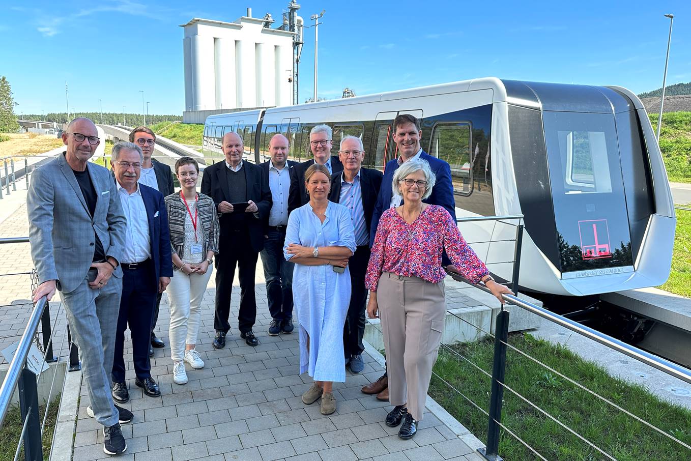 Die Magnetschwebebahn lässt sich flexibel in bestehende und neue Infrastruktursysteme integrieren. Teilnehmende des Kuratoriums (von links nach rechts): Prof. Dr. Klaus Wübbenhorst (Europäische Metropolregion Nürnberg (EMN)), Prof. Dieter Kempf (BDI), Marius Raubacher (I.K. Hofmann), Maike Rothwinkler (EMN), Gunther Oschmann (Müller Medien), Henning Könicke (AFAG Messen und Ausstellungen), Petra Niemczyk (Franconian International School), Dr. Matthias Everding (Sparkasse Nürnberg), Prof. Dr. Siegfried Balleis (Vorsitzender des Kuratoriums EMN), Johann Bögl (Firmengruppe Max Bögl), Dr. Christa Standecker (EMN). Foto: Kurt Fuchs/Metropolregion Nürnberg
