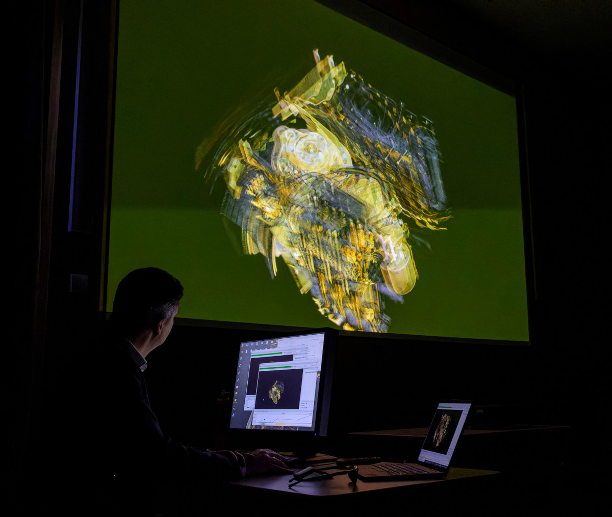Die vom System generierten Datenmengen von etwa 10.000 x 10.000 x 10.000 Voxeln stellen eine besondere Herausforderung für die Forschenden dar. Die Bildverarbeitung und -auswertung erfolgen mit Datensätzen, die mehrere Hundert Gigabyte umfassen können. Hierbei profitieren die Fraunhofer-Forschenden von Ergebnissen des Projekts »Big Picture«, das vom Bayerischen Wirtschaftsministerium an den Standorten Fürth, Deggendorf und Passau gefördert wurde. Im Rahmen des Projekts wurden neuartige Methoden für den Umgang mit sehr großen Datenmengen erforscht, wie sie insbesondere bei der Hochenergie-Computertomographie entstehen. Die Projektergebnisse wurden konsequent weiterentwickelt und stellen nun einen wesentlichen Baustein für das Datenhandling bei Hochenergie-Röntgensystemen dar.