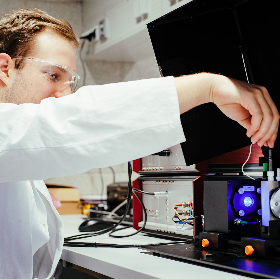 Prof. Dr. Maik Eichelbaum von der Fakultät Angewandte Chemie der TH Nürnberg erforscht deshalb eine neue Methode zur Analyse der Photoaktivität von halbleitenden Photokatalysatoren. Die Photoaktivität beschreibt, wie gut ein Stoff durch die Bestrahlung mit Licht eine chemische Reaktion wie zum Beispiel die Spaltung von Wasser zu Wasserstoff und Sauerstoff beschleunigt („katalysiert“). Im Projekt „Entwicklung einer neuen Standardmethode zur Analyse der Photoaktivität von Halbleitern für umwelt- und energierelevante Anwendungen – TiO2-Photoanalytik“ beschäftigt sich Prof. Dr. Maik Eichelbaum im Speziellen mit Titandioxid TiO2 als Photokatalysator. Das ist das weißeste und hellste überhaupt bekannte Pigment mit reflektierenden Eigenschaften. Durch die ultraweiße Farbe kann Titandioxid UV-Strahlen streuen oder diese sogar absorbieren. Deshalb wird es unter anderem auch in Sonnenschutzmitteln und in Wandfarben verwendet.