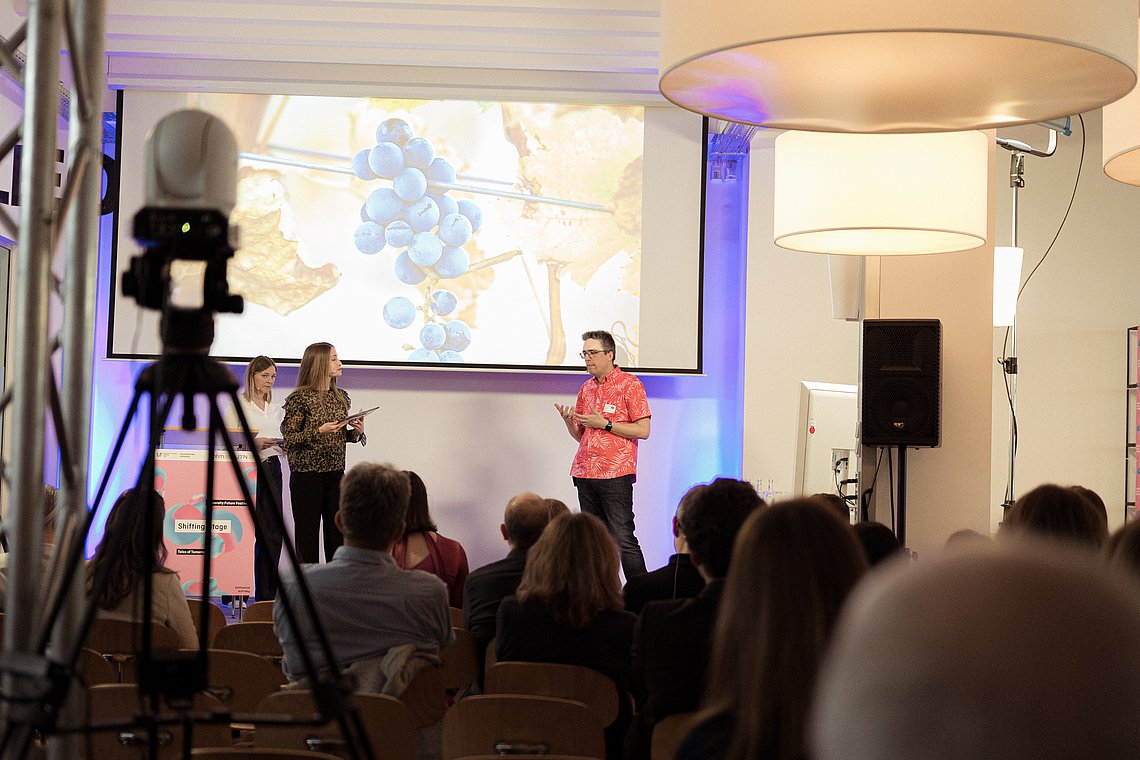 Neben den Vorträgen auf der Bühne wurde im LEONARDO auch ein Rahmenprogramm mit Workshops und Demonstrationen angeboten, die Inspiration zu Lehre, Künstlicher Intelligenz und Digitalisierung vermittelten. So konnten die Teilnehmenden unter anderem im „Gang der steilen Thesen“ ihre Meinung zu den Hindernissen für gute Lehre an ein symbolisches Tor heften, im Lego-Serious-Play-Workshop wurden weitere Anwendungsmöglichkeiten von Gamification erfahrbar gemacht, Prof. Toni Hinterholzinger von der Hochschule für Musik Nürnberg demonstrierte die Einsatzmöglichkeiten von im digitalen Raum nachgebildeten Musikinstrumenten und die „Prompting Station“ des eTeach Netzwerk Thüringen vermittelte praktische Fähigkeiten im Umgang mit KI-Werkzeugen.