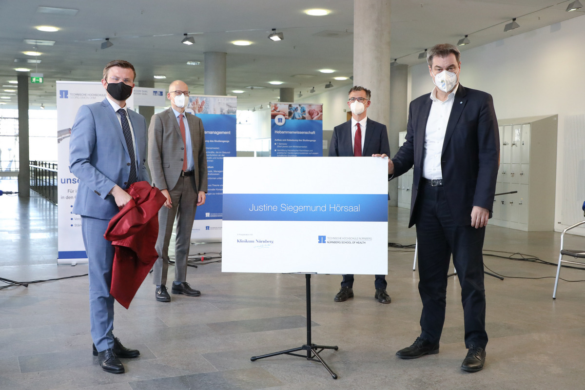 Ministerpräsident Dr. Markus Söder wünschte dem Kooperationsprojekt der TH Nürnberg und des Klinikums Nürnberg einen guten Start: „Nürnberg ist Heimat der Hightech Medizin. Mit der Nürnberg School of Health bekommt das Medical Valley der Metropolregion einen weiteren Leuchtturm. Die Corona-Pandemie hat uns gelehrt, wie wichtig ein funktionierendes Gesundheitssystem für unsere Gesellschaft ist. Mit den neuen Studiengängen ‚Digitales Gesundheitsmanagement‘ und ‚Hebammenwissenschaft‘ schaffen wir ein wegweisendes Angebot, das HighTech und HighCare miteinander vereint.“
