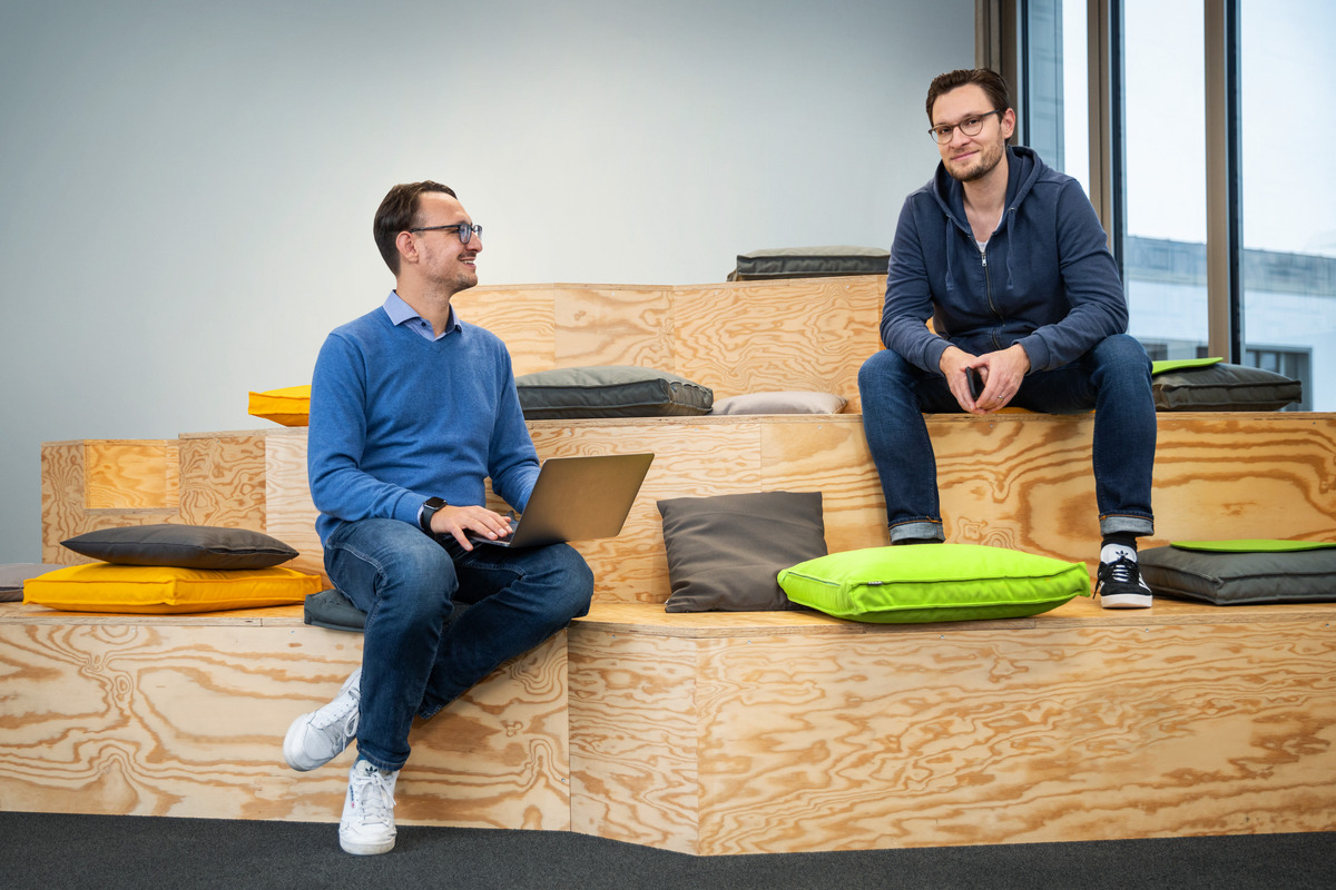 Innovationskünstler Dennis Stühler und Benedeikt Thienel entwickeln im Datev Lab Smart Business-Lösungen.